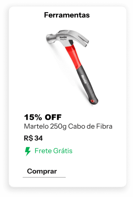 Chegará grátis amanhãMartelo Unha 250g Cabo Fibra Emborrachado Ronix Rh-4726