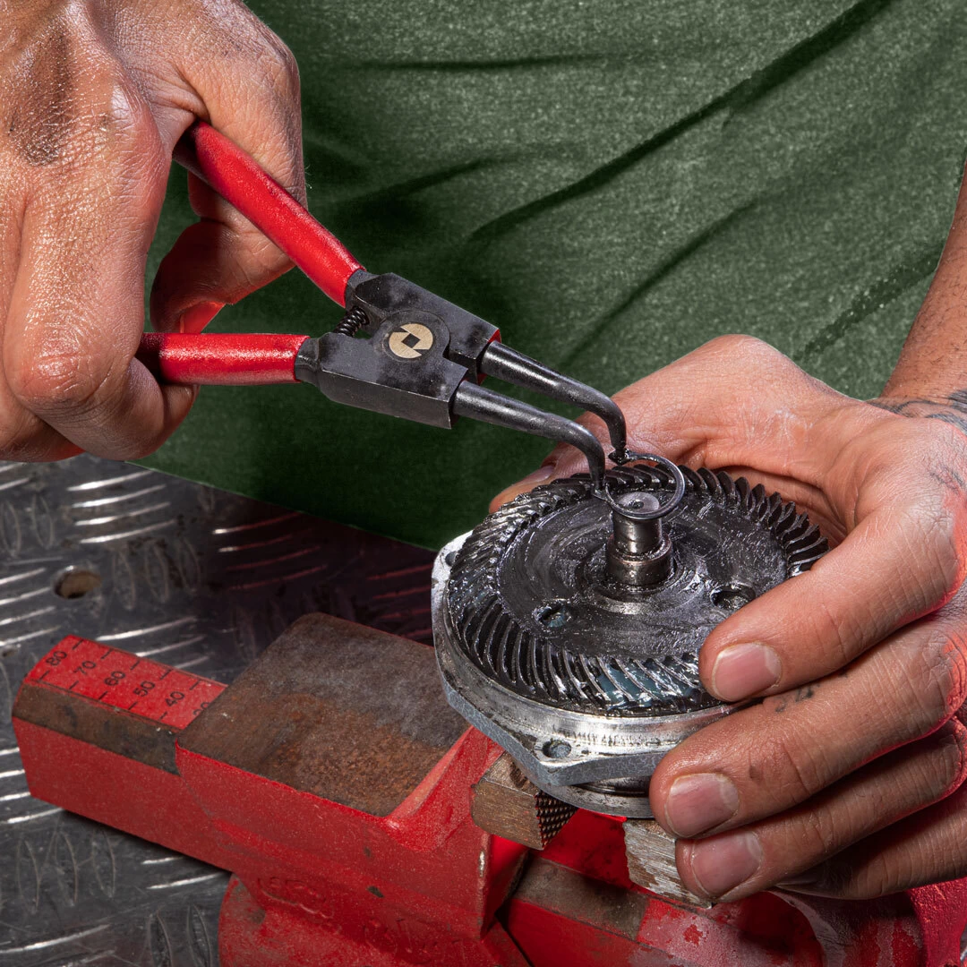O alicate externo curvo para anéis de retenção Ronix RH-1737 é uma ferramenta essencial para profissionais que trabalham com montagem e desmontagem de componentes mecânicos. Projetado com mandíbulas anguladas em 45° ou 90°, ele permite alcançar e manusear anéis de retenção em áreas de difícil acesso, especialmente em eixos ou objetos cilíndricos. Fabricado em aço carbono endurecido, o RH-1737 oferece excelente resistência, durabilidade e longa vida útil. Seu acabamento preto nas cabeças protege contra ferrugem e corrosão, enquanto o cabo em PVC antiderrapante proporciona conforto e reduz a fadiga durante o uso. O sistema com mola facilita a operação com uma só mão, tornando o trabalho mais ágil e eficiente. Ideal para aplicações automotivas e mecânicas, este alicate combina precisão, ergonomia e robustez para atender às demandas dos profissionais mais exigentes