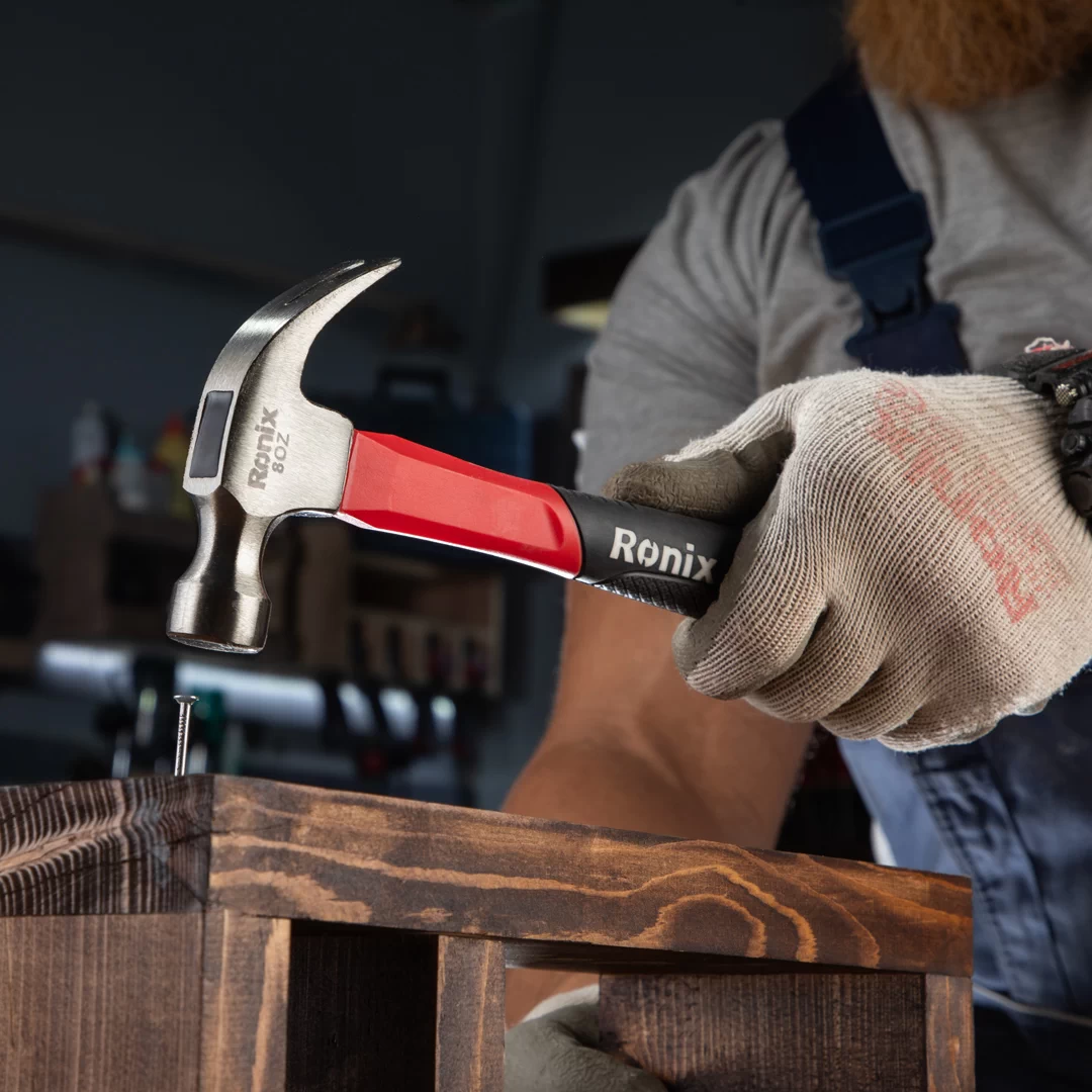 A série Ronix Machinist Hammers inclui 7 martelos profissionais de alta qualidade, variando de 100gr a 1500gr de peso. O Ronix Fiberglass Handle Machinist Hammer 250g possui um cabo de núcleo de fibra de vidro com absorção de choque e também uma cabeça de aço polido forjado para garantir a máxima resistência e durabilidade. Para serem aplicáveis a diferentes aplicações, os cabos desses martelos mecânicos duráveis são revestidos com polipropileno. O design da junta cabeça-manípulo Ronix cria uma ferramenta resistente ao desgaste usando resina epóxi não destacável.